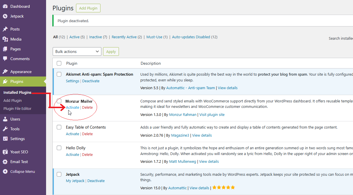 Monzur Mailer includes WordPress filters for customization. Add these to your theme’s functions.php