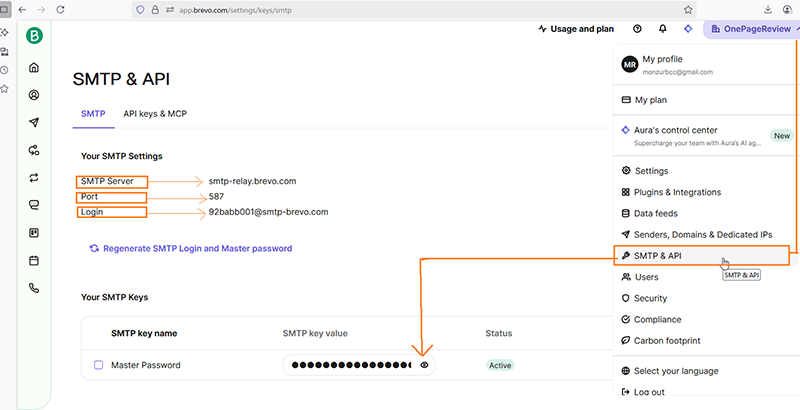 , Password: [Your API Key], Encryption: TLS. Alternatively, use Google Workspace (smtp.gmail.com