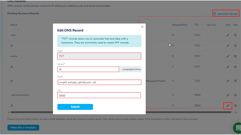 The SPF (Sender Policy Framework) record authorizes Brevo to send emails for your domain (e.g., onepagereview.com